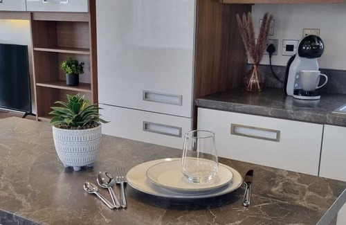 Large kitchen, dining and living room area. Everything you need for self catering including large fridge freezer, microwave, oven and all dinnerware. The kitchen also benefits from a washing machine (please bring your own washing detergent) and dishwasher (1 tablet per day provided).