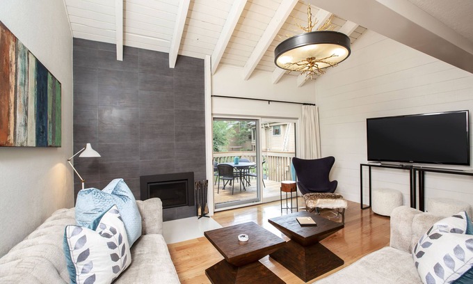 Stunning contemporary Snow Creek condo with mountain views. Completely renovated. This property has A+ style which includes the finishes, furniture, linens, stocked kitchen and is is by far the best at this price point. The meticulous details and attention to quality are remarkable. Located at Dollar mountain and close to the Sun Valley Resort Village, this 2BR/2Bath w/ loft (2 twins) Sun Valley Snow Creek Condo is the perfect spot for your next summer or ski vacation. One of the most desired locations with easy access to Dollar Mountain for winter skiing, or scenic summer hiking! A short stroll to the Sun Valley Pavilion, Sun Valley Lodge, & Sun Valley Inn, offering everything from concerts, shopping, fine dining, movies, & ice skating. Community pool and hot tub (winter only). The Snow Creek complex is serviced by the free Mountain Rides bus system from Baldy Circle, access to Ketchum & all other areas of the resort.