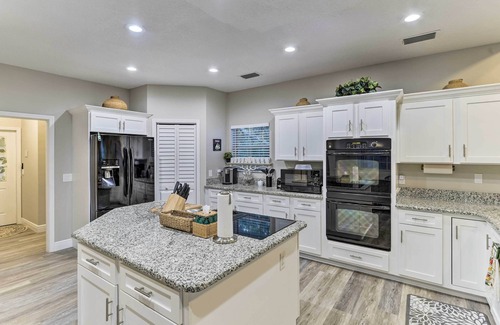 Prepare for an unforgettable and relaxing retreat when staying at this gorgeous vacation rental in Titusville! Complete with beautiful indoor and outdoor spaces, this 4-bedroom, 2.5-bath home has everything needed during your next trip to the Sunshine State — including a private pool and fully equipped chef’s kitchen! Tee up at one of the nearby golf courses or spend the day lounging around the pool. After, cozy up in the living room and enjoy a family movie night on the projector.