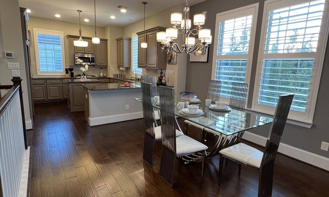 Experience upscale living in this gorgeous three-story home, beautifully decorated with modern décor. The first floor features a versatile TV lounge/bedroom, while the second floor boasts an elegant living room, dining area, gourmet kitchen, and guest bathroom. The third floor offers a luxurious master suite with a sunken tub and spa-like shepherd shower, plus a second bedroom with its own private bath. Also a laundry room closet with Samsung washer and dryer. Enjoy breathtaking views from every window—this home truly feels like a five-star hotel suite!