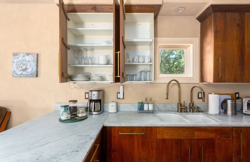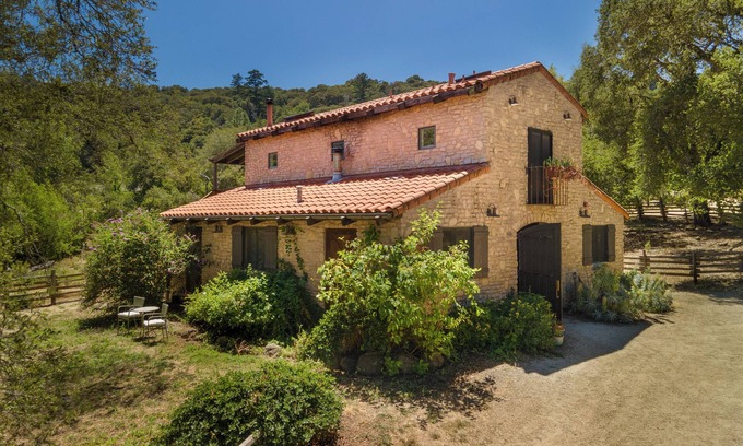 Incredible location above Silicon Valley in the redwoods. Architecturally designed Tuscan Style Stone Home with a magnificent view of the Bay area. Luxury bedding, marble shower and Chef's kitchen. Close to the ocean and the city, surrounded by nature preserves and numerous hiking trails. 30 miles from San Francisco and Santa Cruz, 16 miles to Half Moon Bay, 30 miles from SFO Airport. Hang out at the pond for a BBQ, visit the local Winery next door, hike the many gorgeous trails. Unwind and relax in this magical, unique and stylish retreat.