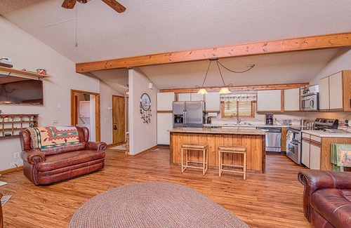 Good access, paved roads, good parking. Large living area with ample seating and dining-each seat has a great view! Flat screen tv's with Dish Network in bedrooms and living area. Washer/dryer, wood burning fireplace, central heat/air, wi-fi, carpeted floors, fully furnished stainless steel kitchen including 4 burner stove; dual oven; refrigerator; dishwasher; microwave; toaster and toaster oven; coffee maker; trash compactor. All cookware, dishes, silverware, potholders and towels, granite bar with seating, ample space pantry, panini, electric can opener.