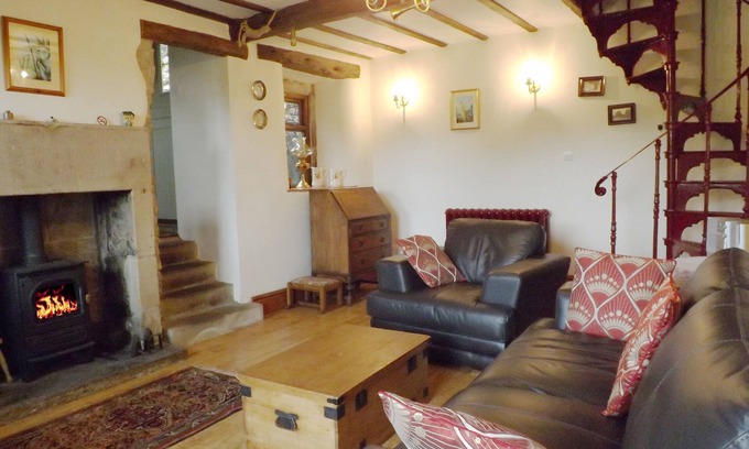 Please note: Short breaks are available as three night weekend breaks Friday to Monday, or four night midweek breaks Monday to Friday. Three night midweek breaks are available between Monday and Friday but only at late availability, ie seven nights before arrival. Week stays are Friday to Friday or Monday to Monday.. All breaks have arrival from 3pm and a 10am departure. Overdale Cottage is a beautiful 200 year old former lead miner's cottage. It is very spacious and has exposed beams and stonework, log burning stove set within the original gritstone fireplace (initial basket of logs supplied October to March), and full gas central heating. The cottage has a lovely beamed sitting room/dining area and there is a separate kitchen. A spiral staircase leads to the bedroom and bathroom.