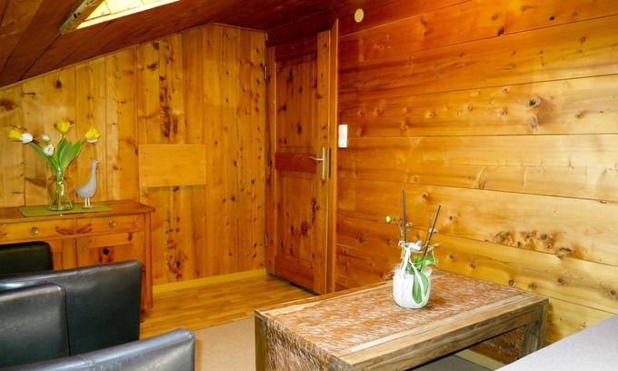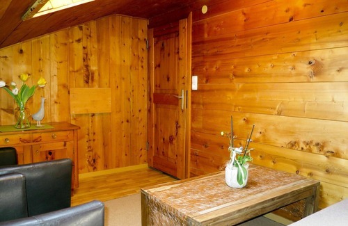 "Oberkofl (LNH300)", 6-room apartment 120 m2 on 2 levels. Rustic and cosy furnishings: upper floor: 3 double bedrooms, each room with hand-basin. Kitchen-/living room (oven, dishwasher, 4 ceramic glass hob hotplates, toaster, kettle, microwave, electric coffee machine) with dining nook. Shower/WC. 2nd upper floor: living room with sloping ceilings with satellite TV. 2 double bedrooms with sloping ceilings, each room with hand-basin. Exit to the balcony. Shower, sep. WC. Heating. Wooden floors, carpet. Balcony. Balcony furniture. Panoramic view of Hintertuxer Gletscher. Facilities: children's high chair, baby cot. Internet (WiFi, free). Please note: non-smokers only. Smoke alarm, fire extinguisher.