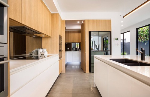 Stunning Germancraft open plan custom kitchen with Butler's pantry including a wine fridge, perfect for entertaining.