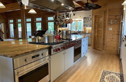 Enjoy breathtaking views of the water from the expansive porch, vaulted-ceiling family room/dining area/spacious kitchen and large sunroom. A large dining room table seats the whole family. Spacious fully-equipped kitchen includes extensive counters for food preparation. This beautiful and unique home features an open architectural design with cypress tree trunk columns supporting a catwalk and cathedral ceiling. Each well appointed bedroom offers waterfront views and en suite bathrooms. For families traveling with children: a pack and play and bassinet, toys, games are available. Enjoy indoor activities surrounded by the water from the all-windows sunroom or relax by the large gas fireplace. Ships pass in the distance, along with sailing and fishing boats. View oyster and crab watermen passing by the dock depending on the season. Situated in a quiet neighborhood with large waterfront wooded properties. Private dock extends 100 feet over the water with an Adirondack chair sitting area for viewing birds, sunrises and stargazing. Two crab traps and frozen crab bait are provided. Bring your fishing gear and fish from the dock. Also available are a kayak, a standup paddle board and a two person pedal boat. Boaters can dock their boat. A public boat launch and marinas are close by. The Virginia Northern Neck offers local wineries, nature trails, waterfront restaurants, museums, ferry tours to Chesapeake Bay points of interest, golfing, an entertainment complex with movie theaters, an arcade and miniature golf and plenty of early American history. Explore and experience early Colonial life in America: Yorktown, Williamsburg, George Washington's Birthplace, Stratford Hall (Light-Horse Harry Lee Plantation) are within a 1-1/2 hour drive.