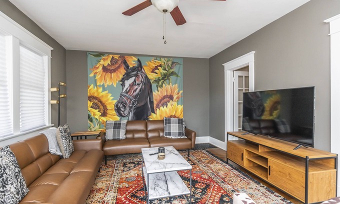 Enjoy everything Lexington has to offer while staying in this stylish and spacious 1st floor apartment in the historic Chevy Chase neighborhood. The industrial-style decor features works of art and photos inspired by the bourbon industry and horse racing. Walking distance to some of the best restaurants in the city, iconic bars, quirky shops, Kroger Field and UK Campus. A short drive away to Downtown, Rupp Arena, the Distillery District, Keeneland, the Bourbon Trail and many other attractions.