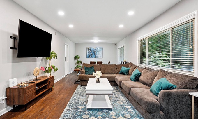 Unwind with the whole family at this peaceful & centrally located 4-bedroom, 2-bath ranch home. Just 15 minutes from the airport & Midtown/Downtown Atlanta, & 20 minutes from Buckhead, this spacious ranch is perfect for families, friend groups, or business travelers.