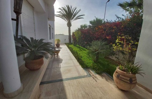 Welcome to wonderful Villa with Swimming Pool, surrounded by large flowering garden, big terrace with sun loungers for relaxation. Also offers spacious bright rooms with spectacular views from inside and outside, it is great place for Friends, Families …, only 5 min drive to Agadir's beautiful golden sandy beach.