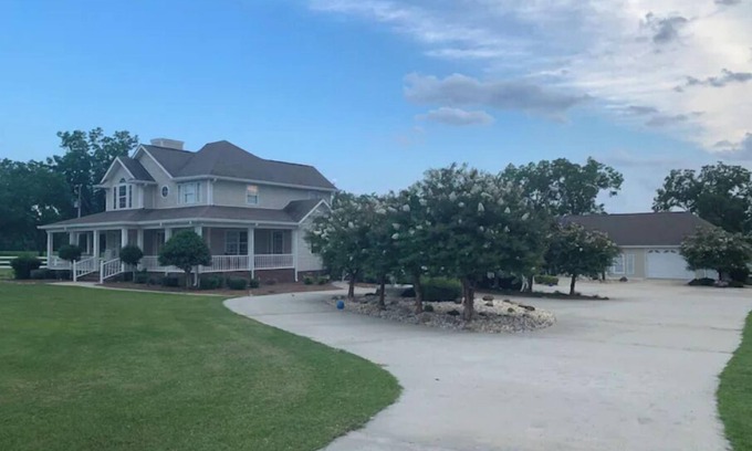 You will love staying in our new Guest House. It's a 2 bedroom, 2 bath, with a full kitchen, dining area, and living room. The master bedroom has a queen bed and the second bedroom has a bunk bed with two XL twins By request, we can pull the top mattress off the bunk bed and place it on a traditional frame. The master bathroom has a beautiful walk-in curbless shower and double vanity. The house is down a long private drive after going through a security gate. Guests have use of our private inground pool, BBQ, fire pit, 40 acres, and 2 fishing ponds.