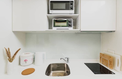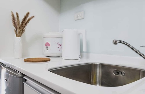 Escape the hustle and bustle of the city without sacrificing convenience. Our stylish apartment is perfectly located within Taipei Main Station, offering easy access to all that Taipei has to offer. With a well-equipped kitchen, cozy balcony, and a stylish bedroom complete with a 75-inch TV and desk area, you’ll have everything you need for a comfortable and relaxing stay. Unwind in the luxurious bathtub after a long day of exploring.