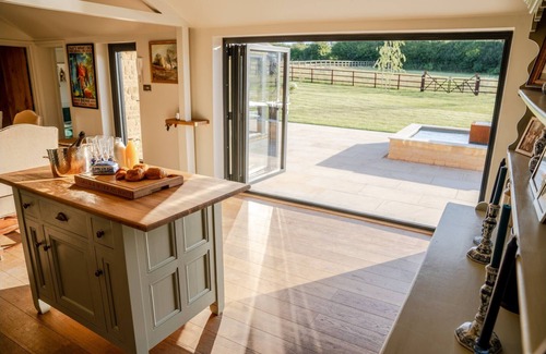 Recently renovated 5 bedroom barn conversion with hot tub set within 4 acres of private wild flower meadows, close to Bath & Bristol in the Cotswold village of Marshfield.