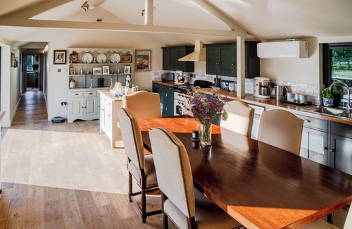 Fully equipped kitchen/dining room with appliances such as Rangemaster fan oven & hobs, Nespresso coffee machine, fridge freezer with water & ice machine, Kitchen Aid, Soda Stream etc.