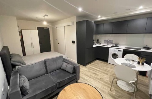 Stylish flat in Old Trafford is located in Old Trafford. Stylish flat in Old Trafford provides accommodation, featuring Internet, Laundry, TV, among other amenities. This Apartment features Internet, Laundry, TV, to make your stay a comfortable one.