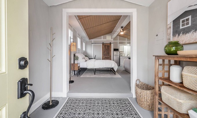 Stylish Guest House in Seminole Heights with Workspace |Private entrance, Parking, Patio & Grill | House in Tampa