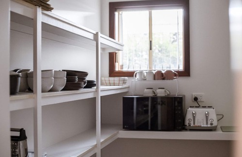 The fully equipped kitchen boasts freshly roasted coffee beans and a selection of fine Australian teas, along with culinary essentials. Outside, a private patio offers a BBQ, dining area, and lounge. The 2-bay garage includes a table tennis table, with additional parking for four cars in the driveway.