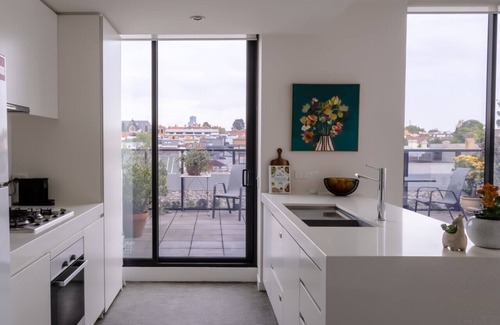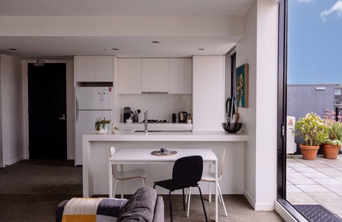 The fully-equipped kitchen features sleek countertops and appliances for your comfort in preparing meals. Enjoy dining in or take advantage of the numerous restaurants and cuisines just outside the door along Bridge Road, or venture further to Victoria or Swan Street in Richmond, or head into the city.