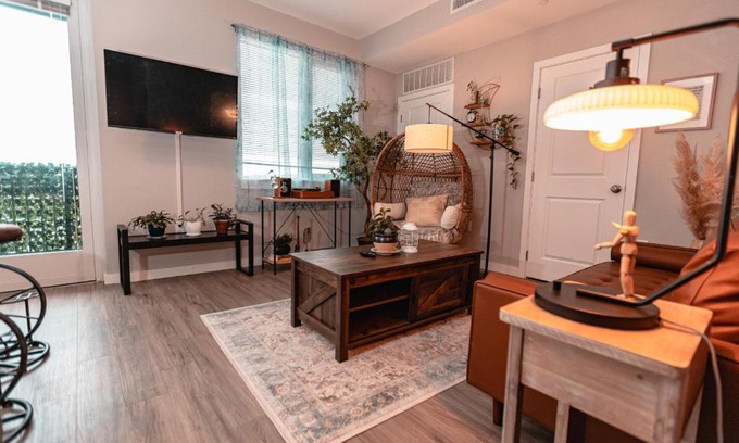 Featuring a seasonal outdoor swimming pool, a garden, and a shared lounge, Stylish Pet Friendly Space w Balcony, Gym, Pool offers accommodation in Alexandria with free WiFi and city views. Set 3.3 km from George Washington Masonic National Memorial, the property provides a terrace and free private parking. This apartment comes with 1 bedroom, a kitchen with a fridge and an oven, a flat-screen TV, a seating area and 1 bathroom equipped with a shower. Towels and bed linen are featured in the apartment. Gadsby's Tavern Museum is 4.5 km from the apartment, while Alexandria's Christ Church is 4.5 km away. The nearest airport is Ronald Reagan Washington National Airport, 8 km from Stylish Pet Friendly Space w Balcony, Gym, Pool.