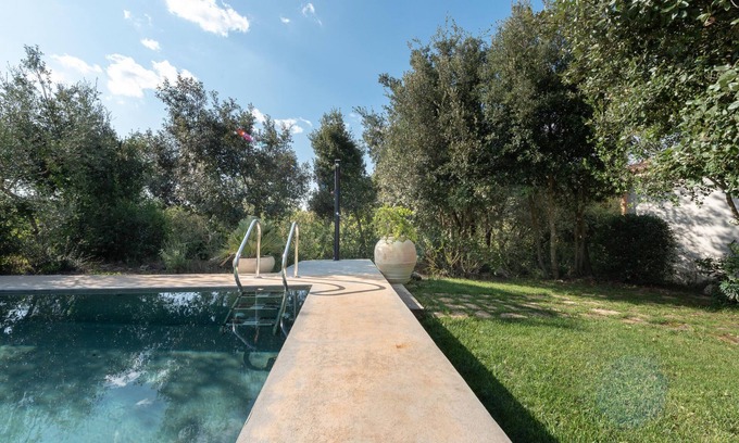 Outside, on the kitchen side, there is a splendid terrace facing a quarry, while at the back of the house there is a square-shaped swimming pool immersed in the garden of the house.