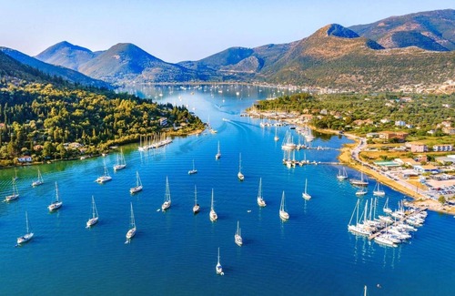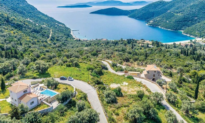 This elegant villa offers stunning panoramas of the pretty inland village of Poros to the east and immediately below it, the horse-shoe shaped Mikri Gialos beach with the glittering Ionian Sea as a perfect backdrop. Situated in an elevated location, and surrounded by green fields and orchards, the five minute drive to the beach is down a simple winding road and opens onto the beach with a couple of seafront tavernas and a mini-market to hand. Set on two floors, the French "Provencal" style interiors are tasteful and offer spacious country living with the main living, dining and kitchen areas flowing out through patio doors onto the swimming pool terrace. The twin bedroom on the ground floor has an ensuite bathroom and opens onto a terrace, whilst on the first floor the double bedroom also benefits from an ensuite bathroom and a balcony great to soak up the amazing views while enjoying a coffee or maybe a glass of something cold on the summer evenings. The traditional village atmosphere in Poros offers cobbled streets and a charming ambience of years gone by, this is complemented by the more laid back atmosphere of the beach front, where the pebble beach has crystal clear waters great for snorkelling and water sports for the adventurous. A delightful base to explore the Southern Lefkas coastline, Melpomene combines comfortable, relaxing interiors with a larger than average swimming pool, a barbecue and wonderful sunsets.