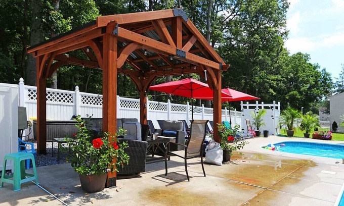 Welcome to our extraordinary 6-bedroom sanctuary in Egg Harbor Township, New Jersey, where luxury meets comfort. This stunning home features 2.5 bathrooms indoors and an additional bathroom outdoors, accommodating up to 16 guests with a regal king-sized bed and seven plush queen-sized beds. It's the perfect setting for hosting memorable events and celebrations.