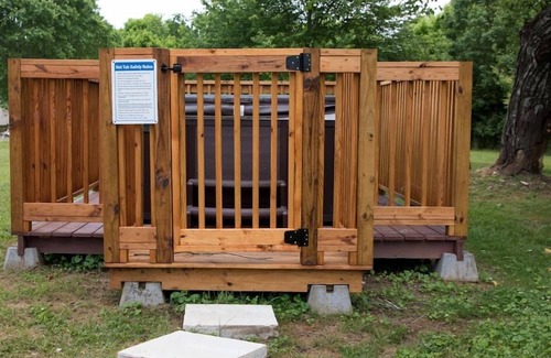 As a traveler, you'll love unwinding in the hot tub after a day of exploring. Stay connected with the high-speed WiFi, and enjoy the convenience of the in-unit kitchen. Curl up by TV for a movie night or dive into the selection of games, books, and toys for the kids. On the 10-acre property are 1.25 miles of manicured paths lined with wildflowers, a 5-person dry sauna that most folks preheat for a treat after a dip in the hot tub, and a kids' playground that is known for its treehouse library. You'll also find custom amenities you can only find in the country like an array of fire pits, tree swings made for kids and adults, and a dog park with runs for off-leash playtime.