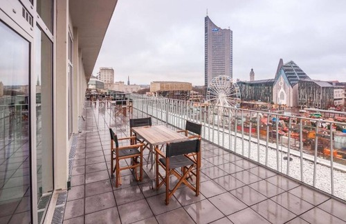 Mitten in der florierenden Innenstadt Leipzigs, am Augustusplatz, befinden sich diese modernen Designapartments. Ob Sightseeing oder Shopping – nur wenige Gehminuten sind es zu Oper, Gewandhaus und Ladenpassagen. Ca. 3 Gehminuten entfernt sind Straßenbahnstationen. Die Nichtraucher-Apartments sind hochwertig möbliert und bieten Platz für bis zu 6 Personen. Das Lebendige Haus, in dem sich die Ferienwohnungen befinden, ist ein innovatives Wohn- und Geschäftsgebäude mit Gastronomie, Café, Einzelhandel, Büros und Wohnungen. Allen Mietern steht ein Concierge für Fragen und Anliegen zur Verfügung.