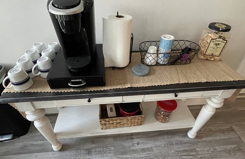 This room is decorated in a Paris theme. It can be used as a lovely anniversary or honeymoon suite. Let host know if you would like to arrange for the gift basket. It has a separate jacuzzi tub, shower/tub, microwave, mini fridge, tv & workspace.