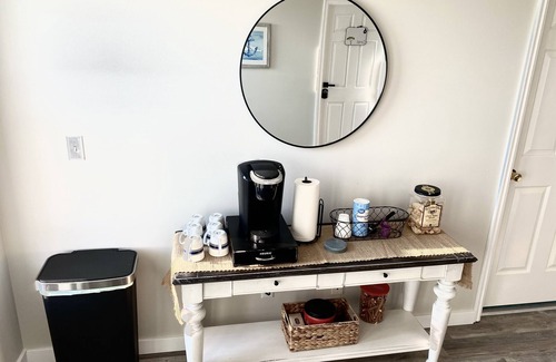This room is decorated in a Africa theme. It can be used as a lovely anniversary or honeymoon sweet. It has a jacuzzi tub, shower/tub, microwave, mini fridge, tv & workspace. It is on the top floor. The kitchen and living room is a shared space with other guests.