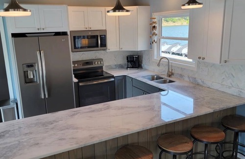 The Boathouse has a fully equipped kitchen with full size appliances along with central heat and air.