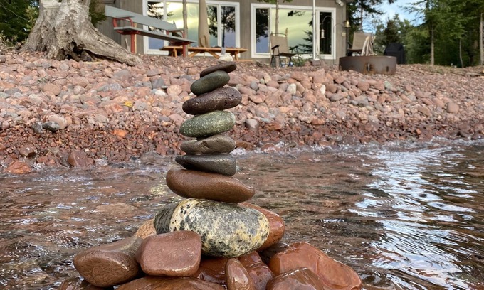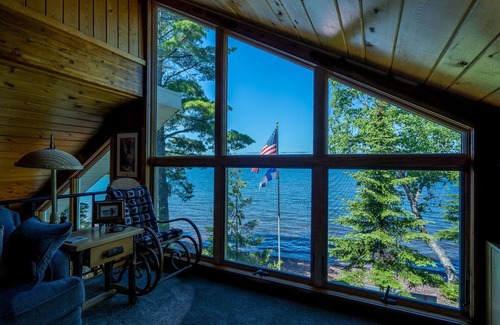 This beautiful Lake Superior cabin that sleeps six [ two bedrooms plus an open loft that has a queen size hide a bed ] is situated in a harbor with a great view of Brockway Mountain and the Copper Harbor lighthouse. A short bike ride will take you to the town of Copper Harbor which has many great restaurants and gift shops. Fort Wilkin's State Park is a short walk away. The Area is known for its great mountain bike trails and kayaking. Rentals are available for both sports. Sit near the open fire and enjoy the beautiful sunsets and northern lights over Lake Superior. We have two kayaks that may be used at your own risk. Paddles and lifejackets are in the storage shed for your use. The property has one exterior camera, located on corner of bunkhouse facing the driveways.