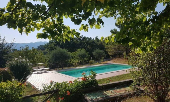 Set in the beautiful Umbrian hillside this pretty apartment has 3 double bedrooms, one of which has an ensuite shower room. There is access to the swimming pool which is within the gardens.