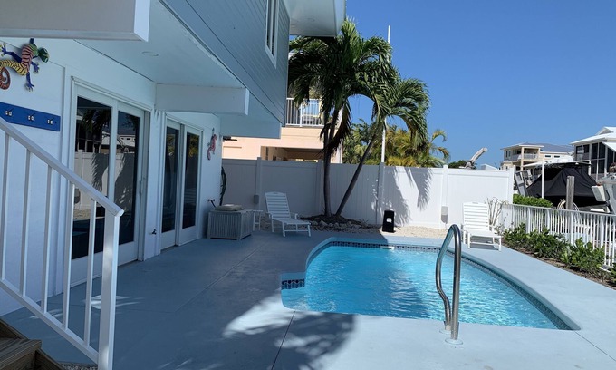 Newly renovated 2 bedroom, 2.5 bath canal front home with pool in quite, safe neighborhood 25 miles from Key West. House is perfect for couples with 2 king size beds and blackout shades, fully equipped kitchen, front porch with large table, pool, canal front with space for boat, office with computer, wifi, recently renovated. 25 mile drive to Key West and Marathon in different directions. Close to Looe Key Reef and Tarpon Belly Island. Fish cleaning table on seawall. Shed available for storage of fishing and scuba equipment. Enclosure downstairs not included with rental (owner's storage). Minutes to Murray's Food Store and fabulous Square Grouper Restaurant. Newly renovated Key West International is just 30 minutes away. No smoking and no pets allowed. Minimum 28 day rental on Summerland Key