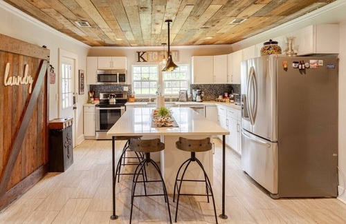 Step into a beautifully restored farmhouse where vintage charm meets modern convenience. Designed for relaxation and togetherness, this spacious retreat features 3 inviting bedrooms (2 Kings, 1 Queen, plus a twin futon) and 2 stylish bathrooms, including a luxurious clawfoot tub. The fully equipped kitchen is perfect for cooking and gathering with loved ones.