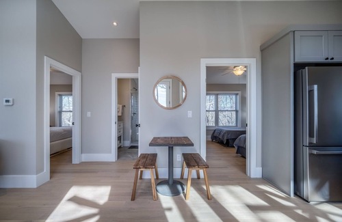 Welcome to the Summit Retreat Guesthouse, a private pet-friendly escape nestled atop a mountain outside Brevard and Rosman, North Carolina. NOTE: All Wheel Drive or 4x4 is a MUST HAVE to access this property. Embrace both nature and luxury in this brand-new vacation rental, complete with unparalleled mountain views, as well as opportunities for adventure and relaxation. This home boasts panoramic views of the beautiful Blue Ridge Mountains and is a perfect home base for guests who plan to fish or paddle the French Broad River, hike or bike in Dupont State Forest or Pisgah National Forest or explore the beautiful Downtown Brevard. Summit Retreat is a thoughtfully curated 2-bedroom oasis with 1 bathroom and accommodates up to 4 guests, plus your furry friend! The first bedroom features a king-sized bed and the second bedroom includes 2 twin-sized beds. Each bedroom has a Smart TV. The shared bathroom is complete with a large, tiled shower and single sink vanity. The open living area features another large Smart TV, modern and comfortable seating, and board games for winding down in the evenings. The kitchen features butcherblock countertops, stainless steel appliances, a Keurig, and windows showcasing the magnificent views. The outdoor space at Summit Retreat is what sets this property apart. The large, covered deck is complete with a large table and comfortable seating, so guests can sip their morning coffee, relax after a day of local adventures, or enjoy the spectacular sunset views while dining al fresco on a meal prepared on the provided gas grill. Additionally, the homeowner is sharing access to the hiking trails on the property - ideal for guests who want to adventure without leaving the mountain! The road up the mountain to the property is gravel and narrow. Additionally, a full flight of stairs are required to access the home. The garage below the home stays locked and is not available to guests. The Host As your host during your stay, White Squirrel Realty is easy to reach by text or phone. Each home we manage is stocked with fresh, professionally laundered linens and supplies to make your stay comfortable. Confirmed guests will receive a text message to the cell phone on the reservation, with a link to the essential information needed to enjoy your stay, like the door code and directions. The digital guidebook has information on the property and on the area, including restaurants, grocery stores, and popular destinations. Guests can go straight to the property they have reserved at check-in time. - Wi-Fi - Washer/Dryer - Gas Grill - Keurig and Standard Coffee Maker - 3 SmartTVs for guests to utilize their own streaming services - Board Games