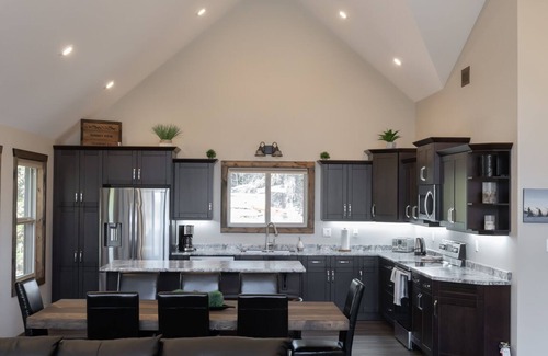 At The Summit View cabin Guests will appreciate the ambiance of this cabin, with its picture windows, hand-crafted furniture, rustic charm, and modern amenities. Groups travelling with vehicles and recreational toys can rest assured knowing the exterior parking lot is equipped with electrical outlets as well as 24-hour security lighting. Come kick back, relax, and enjoy the views that Valemount has to offer!