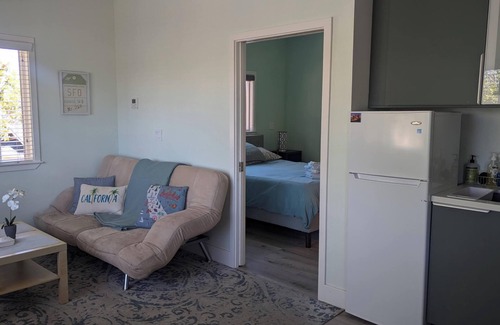 Welcome to this bright, sun-filled apartment in South San Jose. This modern property with private courtyard and entrance is located in a beautiful walking friendly neighborhood. It features 1 bedroom with a Queen size bed, a living room with a comfy futon and a beautiful bathroom stocked with essentials. Guests can enjoy a full seized kitchen with dishwasher, stove, oven, fridge + freezer, microwave, and all cooking essentials. Other amenities include WiFi, AC, heating, and Chrome TV. Your stay here will be enjoyable and relaxing. We look forward to welcoming you to our place.