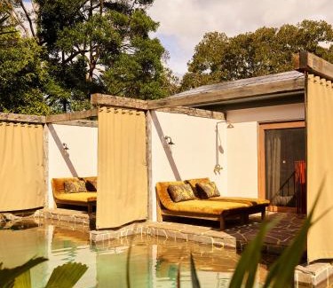 Food & DrinkChocolate/Cookies, Tea/Coffee maker, Bottle of water, MinibarBathroomToilet, Bathtub or shower, Hairdryer, Towels, Shampoo, Conditioner, Toilet paper, Body soap, Shower, Bathtub, Private bathroomGeneralIron, Ironing facilities, Trash cans, Key access, Smoke Alarm, Air conditioning, Heating, Soundproof, Fire extinguisher, Private entrance, FanOutdoorsTerrace, Private pool, Balcony, Patio, Outdoor furnitureMedia & TechnologyFlat-screen TV, Satellite channels, Streaming service (like Netflix), RadioKitchenWine glasses, Cleaning products, Refrigerator, Coffee machine, Electric kettleLiving AreaSofa, Sitting areaViewPool view, ViewActivitiesSaunaBedroomWardrobe or closet, LinensAccessibilityEntire unit located on ground floorPool and SpaInfinity Pool, Pool towels, Plunge Pool, Pool with a viewRoom AmenitiesSocket near the bed |