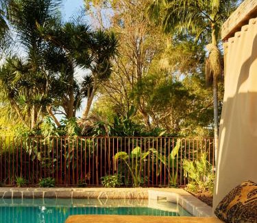 Sun Ranch features a garden, a shared lounge and a sun terrace with swimming pool and buffet breakfast in Coopers Shoot. Providing a bar, the property is located within 5.9 miles of Byron Bay Golf Course. The property is non-smoking throughout and is located 8.9 miles from Cape Byron Lighthouse. Guest rooms are equipped with air conditioning, a flat-screen TV with satellite channels, a fridge, a coffee machine, a shower, a hairdryer and a closet. Each room has an electric tea pot, a private bathroom and free WiFi, while selected rooms are equipped with a balcony and some have mountain views. At the hotel each room comes with a seating area. At Sun Ranch you'll find a restaurant serving Australian cuisine. Vegetarian, dairy-free and kosher options can also be requested. The accommodation offers 5-star accommodations with a sauna and grill. Big Prawn is 15 miles from Sun Ranch, while Brunswick Boat Harbour is 13 miles away. Ballina Byron Gateway Airport is 17 miles from the property.