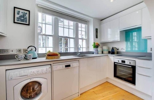 The ground floor has a bright, open-plan kitchen, dining and living area. Despite having a traditional feel, this space is furnished to a very high standard with modern appliances throughout. It is well-equipped with everything you should need.