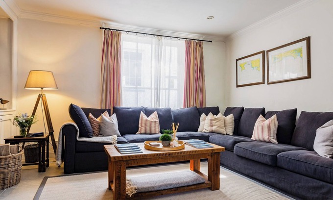 Inviting interiors have just the right mix of contemporary seaside chic & traditional features - a true family heaven, a pebbles throw from the beach. The moment you step out of your car, you hear the waves & smell the sea. Midway between two of the loveliest fishing villages of south Cornwall – Kingsand & Cawsand are as one – is a handsome well-proportioned Georgian house a street back from the sea, a tardis of a holiday home. The villages alone have 3 family friendly sandy beaches in a sheltered bay, the more adventurous may prefer Whitsand Bay, ideal for surfing. All generations will love it - brilliant set up for 2 families +