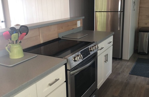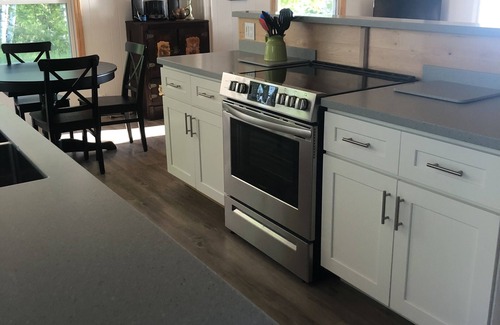 Renovations are complete! All new bathroom with blue subway tile tub surround as well as tongue and groove hard maple walls. Kitchen has new cabinets and Corian counters. Premium plank vinyl flooring is throughout the living room, kitchen, and dining room. Tongue and groove cedar on the ceiling.