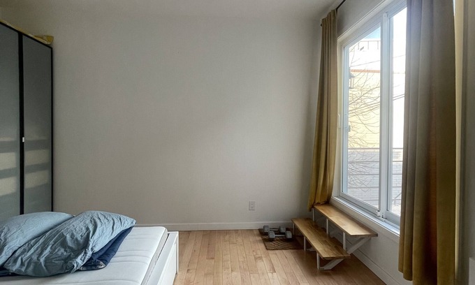 Pack only your suitcases for an enriching stay in the heart of Villeray neighborhood in Montreal and welcome to this charming apartment in Villeray! This bigger open and clean apartment is ideal for a single person, a couple, or even a small group (thanks to the sofa bed). This fully functional and renovated haven offers a fully equipped kitchen, a comfortable living room with cable TV and Wi-Fi, a clean bathroom, a sunny bedroom with storage, and a welcoming outdoor space to share. Not to mention a friendly host always ready to assist.