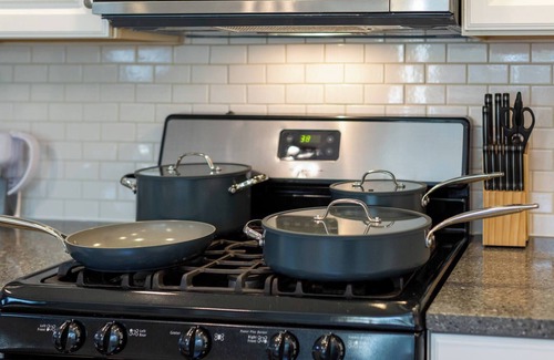 -Chef's kitchen: all the necessities plus much more.... Green Pans (healthier ceramic not Teflon),