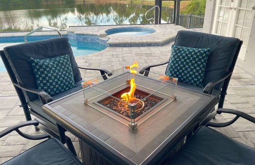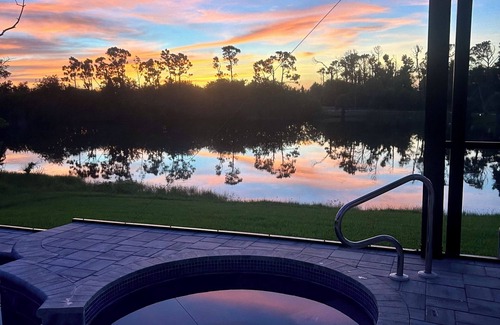 Paradise awaits in this 7-bed/4-bath beautiful home in Rotonda West - SW Florida’s best kept secret. Perfect for a multi-family vacation or BFF getaway with 3 newly renovated, en-suite baths and master bedrooms. The 3 master bathrooms have been fully renovated with luxurious tile showers & floors, granite counters, double sinks & euro glass enclosures! 5 bedrooms, plus a high quality queen sofa sleeper in the den with doors will accommodate up to 12 people with a baby as a possible 13th person. You will enjoy the extra-large lanai with a gas fire pit and bar overlooking the tranquil pond and fenced backyard while relaxing in the free heated pool or spa. Enjoy home-away-from-home with a fully equipped kitchen as well as HS internet & 5 TVs. A lanai bar, outdoor TV, gas fire pit, grill, pool toys, beach chairs & towels are available for outside fun. Enjoy gorgeous sunsets from the lanai, spa and pool. Golf, beaches, biking and boating are just minutes away! Kitchen and laundry starter supplies are available to make your stay more convenient and less costly.