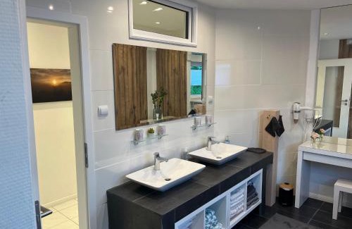 SUNRISE mit großer Terrasse und Weitblick offers accommodations in Pirmasens, 25 miles from Pfalztheater Kaiserslautern and 25 miles from Kaiserslautern Collegiate Church. This recently renovated apartment is located 24 miles from Kaiserslautern University of Technology and 25 miles from Kaiserslautern Central Station. The apartment offers both free Wifi and free private parking. Offering a terrace with mountain views, this apartment also features a satellite flat-screen TV, a well-equipped kitchen with a dishwasher, an oven, and a toaster, as well as 1 bathroom with a shower and a hair dryer. There's also a seating area and a fireplace. Fritz Walter Stadium is 25 miles from the apartment, while Museum Pfalzgalerie Kaiserslautern is 25 miles from the property. Saarbrücken Airport is 37 miles away.