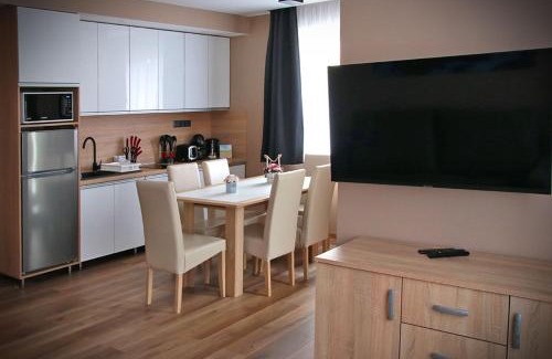 Sunset Bogács features air-conditioned accommodations in Bogács. This property offers access to a terrace, table tennis, free private parking, and free Wifi. Rooms include a patio with views of the garden. The units come with parquet floors and feature a fully equipped kitchen with a microwave, a dining area, a flat-screen TV with satellite channels, and a private bathroom with walk-in shower and a hair dryer. A toaster, a fridge, and stovetop are also offered, as well as a coffee machine and a kettle. At the apartment complex, units include bed linen and towels. For those times when you'd rather not eat out, you can cook on the barbecue. A children's playground is also available at the apartment, while guests can also relax in the garden. Eger Castle is 10 miles from Sunset Bogács, while Egri Planetarium and Camera Obscura is 11 miles from the property. The nearest airport is Debrecen International Airport, 78 miles from the accommodation.