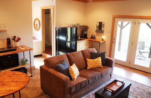 Relax and enjoy stunning sunsets from the private covered porch of Sunset Cottage. Our newly renovated ground-level apartment is located 15 minutes from downtown Waynesville and 30 minutes from Asheville and Tennessee. It's the perfect spot to rest, recharge and start your mountain adventure! The open floor plan, fully functional kitchenette, and gorgeous views make Sunset Cottage the perfect space to enjoy our famous leaf season, snowy winters, vibrant springs, and moderate summers! Welcome!