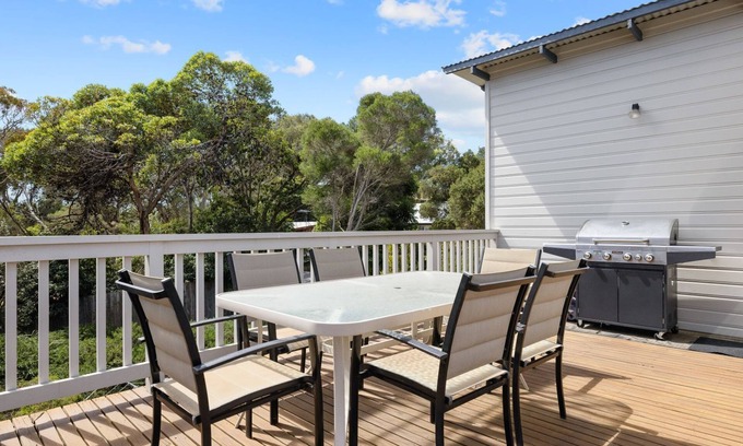 “Sunset Escape” is a delightful double-storey family home in Sunset Strip just a 10 minute walk from Smiths Beach and a short drive from the supermarkets, restaurants & cafés of Cowes and San Remo. Some of the many features of this lovely home are detailed below: