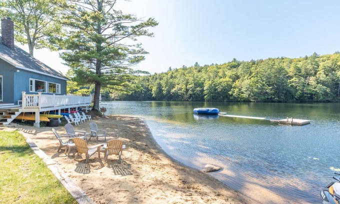 This home offers 3 private 25' boat docks, with a U shaped covered dock, along with a slip in the middle and a slip on either side. There are also paddle-boards, kayaks, and canoes available. Sit back and relax at this amazing home for the week while enjoying the views of Lake Winnisquam.